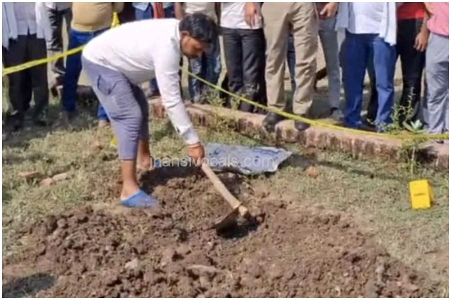 झांसी न्यूज डेस्क: उत्तर प्रदेश के झांसी जिले के कोटखेरा गांव में सोमवार को उस वक्त हड़कंप मच गया, जब कुछ ग्रामीणों को खेत में मिट्टी के नीचे कुछ दबा हुआ नजर आया। देखते ही देखते पूरे गांव में अफवाह फैल गई कि किसी ने हत्या कर शव दफना दिया है। गांव में दहशत का माहौल बन गया और लोग तरह-तरह की बातें करने लगे—किसी ने कहा कि "शायद रात में किसी ने शव छिपाया है", तो किसी ने कहा कि "ट्रैक्टर से मिट्टी डालकर सबूत मिटाए गए हैं"। बढ़ते हंगामे के बीच पुलिस को मौके पर बुलाया गया।